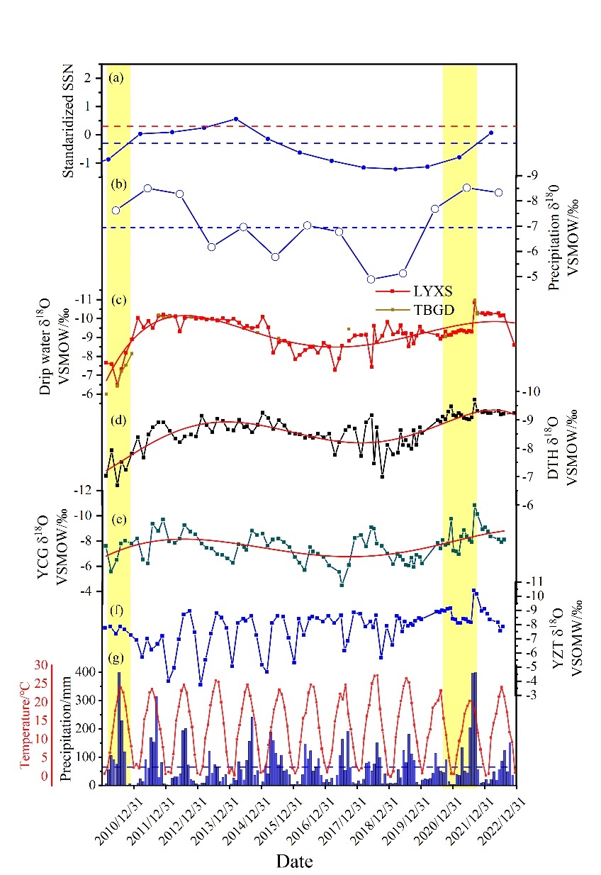 近日,PA视讯PA视讯岩溶环境重庆市重点实验室、重庆金佛山喀斯特生态系统国家野外科学观测研究站杨琰教授课题组在Journal of Hydrology在线发表了关于太阳活动对现代洞穴沉积物δ18O影响的最新研究成果。