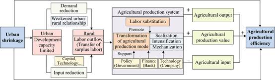 图2. 城市收缩对农业生产效率影响的理论分析框架