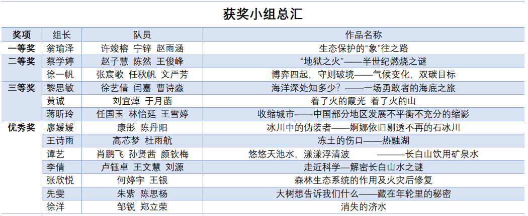 比赛获奖结果