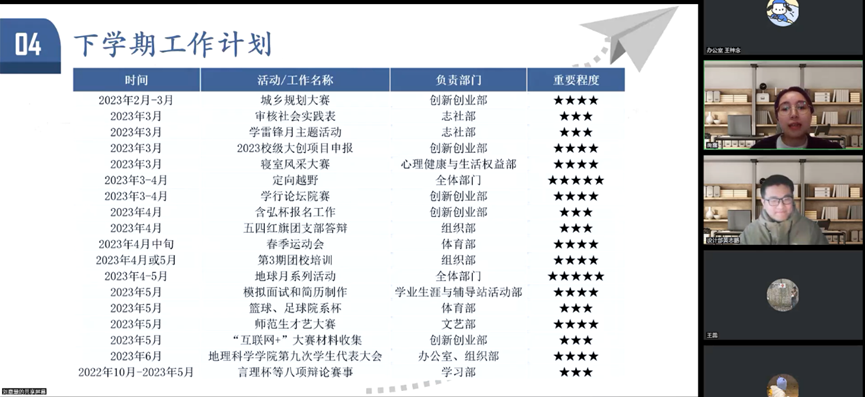 会议议程第四项,由学院团委书记禹露老师介绍团委学生会下学期工作计划。