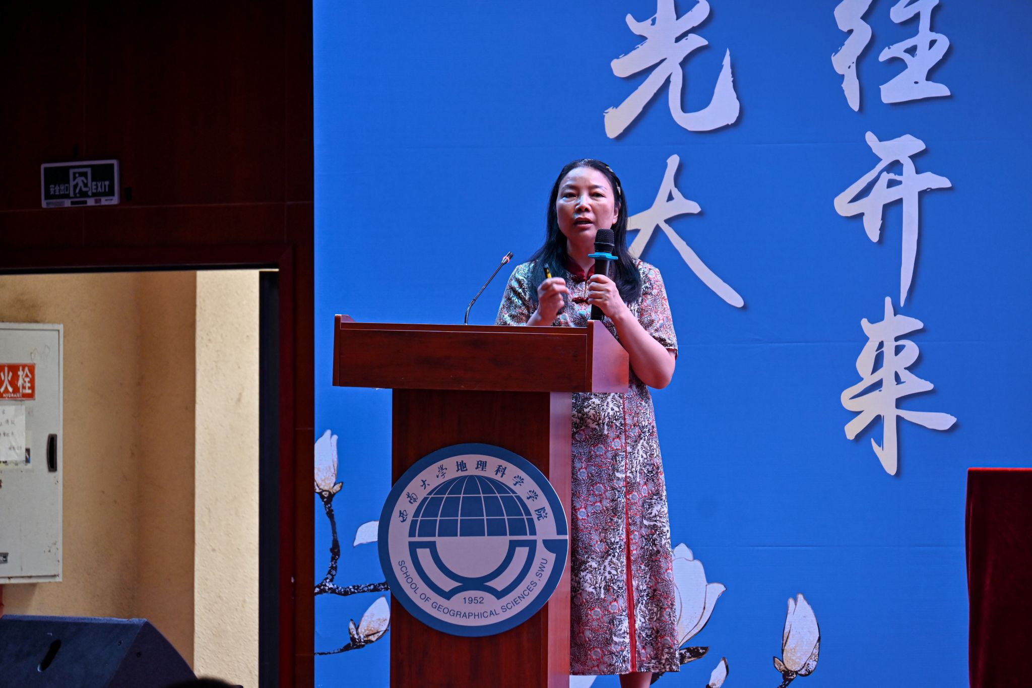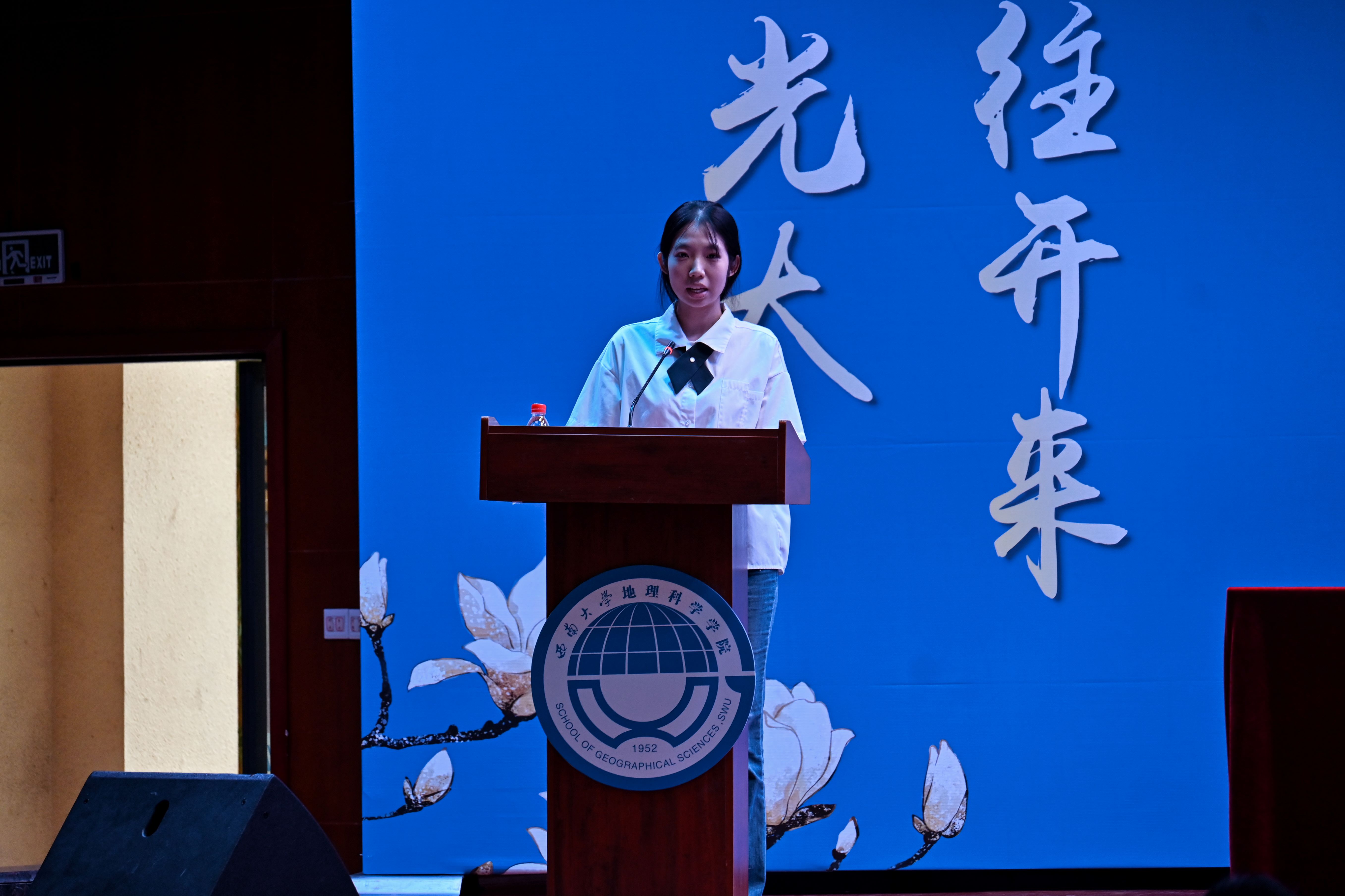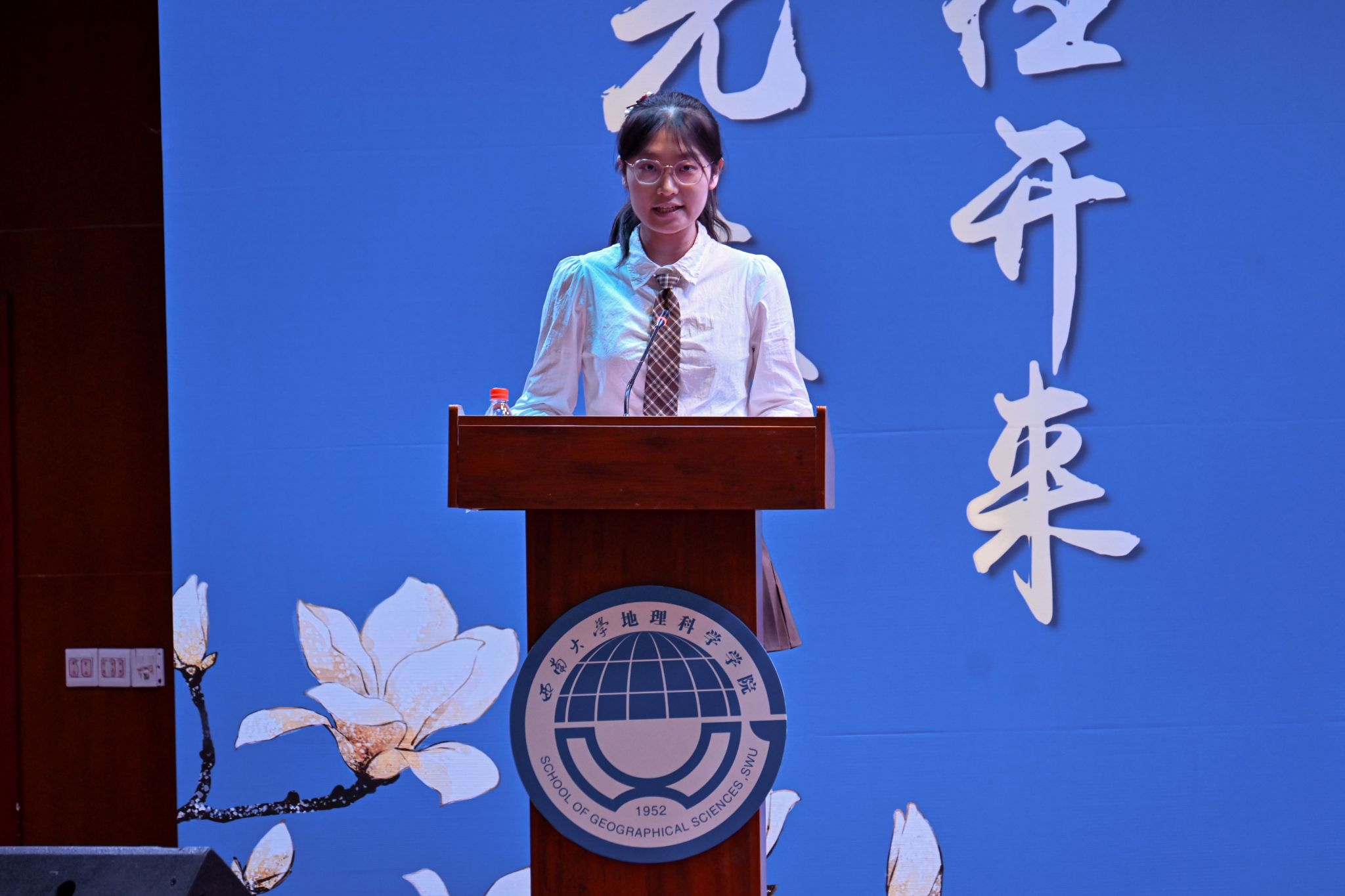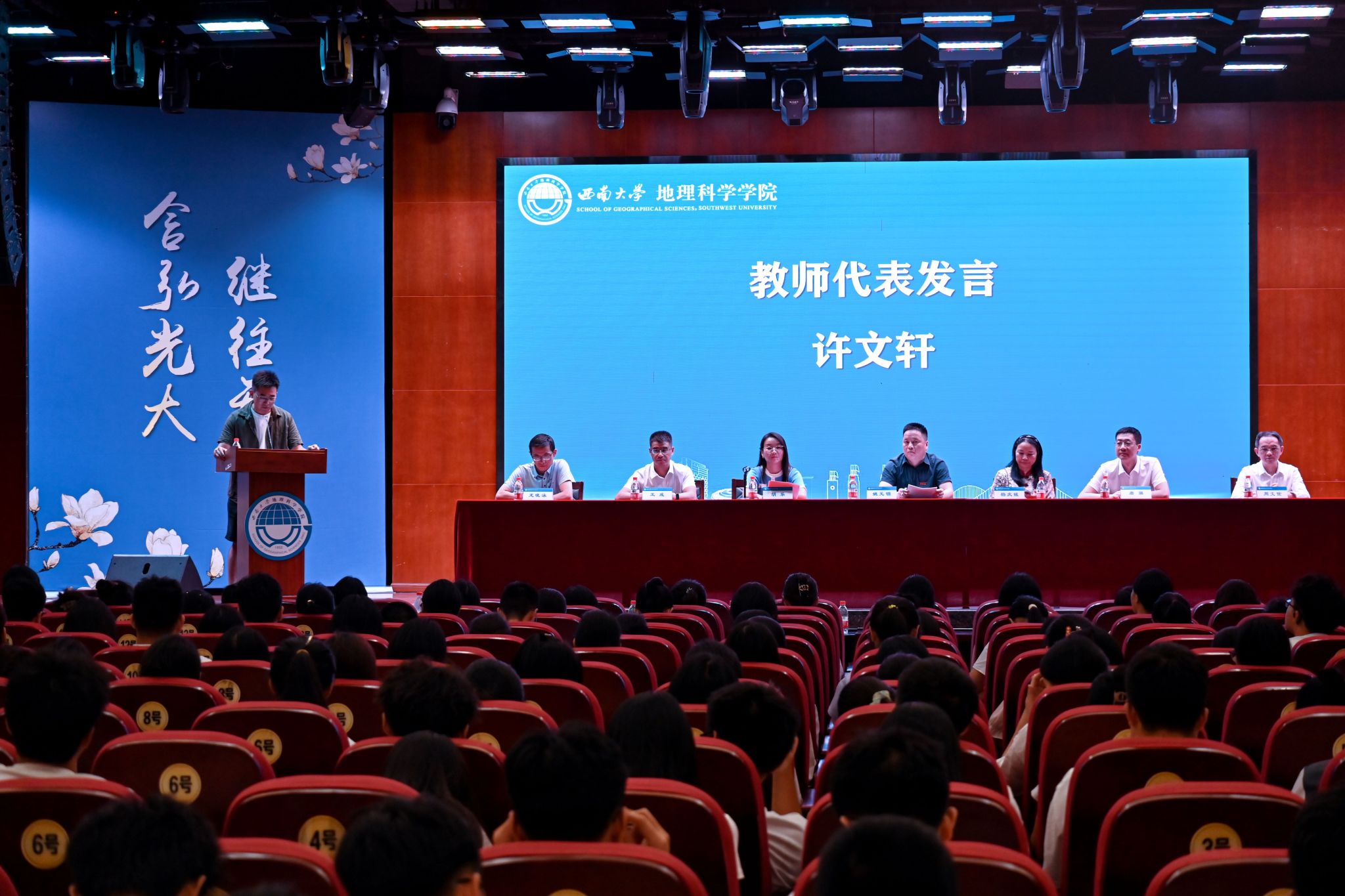 2024级地理科学(师范)专业本科生陈睿彤作为新生代表发言,她表达了自己对大学生活的期待和对地理科学专业的热爱,号召同学们勇敢追逐梦想,勤勉学习。2021级地理信息科学本科生范美怡和2022级地图学与地理信息系统专业硕士研究生常智健分别作为本科生与研究生的老生代表发言。范美怡向学弟学妹们表示欢迎和祝福,激励大家珍惜时间、不断尝试,在科研道路上探索求知;常智健则告诫新生们要学思想、学方法、学态度,珍惜“滚烫的青春”,做自己的“天命人”。