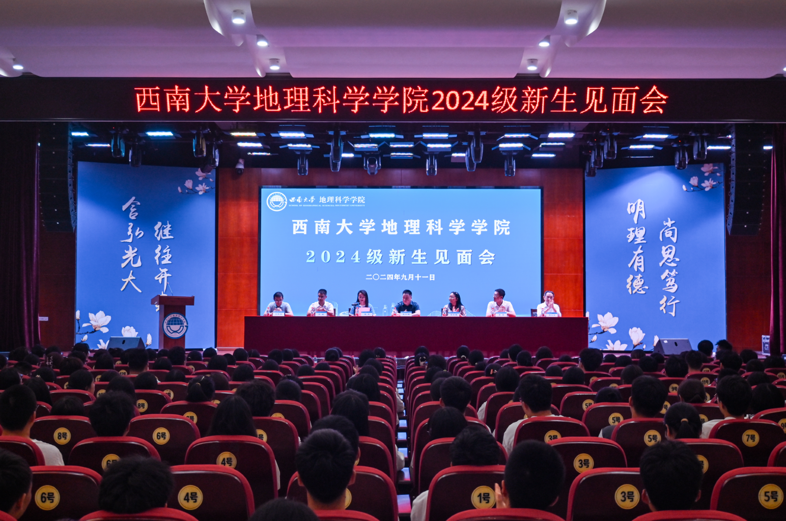 9月11日下午,PA视讯PA视讯2024级新生见面会在南区活动中心107报告厅举行。本次新生见面会的主题为“书香地理 悦读青春”,鼓励新生广泛阅读,用阅读点亮大学时光。学院党政领导班子、各专业系主任、全体辅导员、新生班主任、学生班导师以及2024级的全体同学参加。见面会由学院党委副书记胡乐主持。