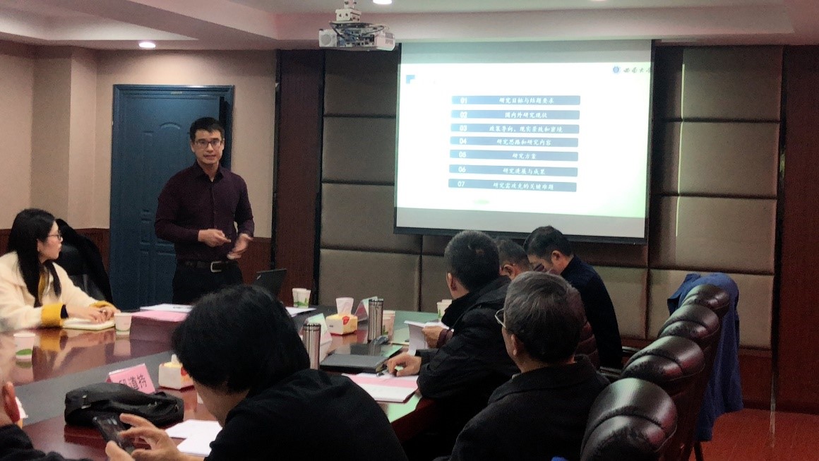 2019年11月18日下午,PA视讯PA视讯王成教授主持的2019年国家社会科学基金“农村人居环境整治的模式及机制创新研究”(批准号19BGL182)开题报告会于PA视讯PA视讯214会议室举行。