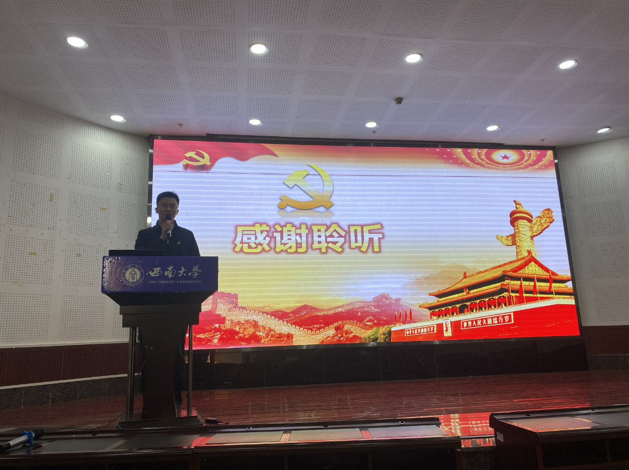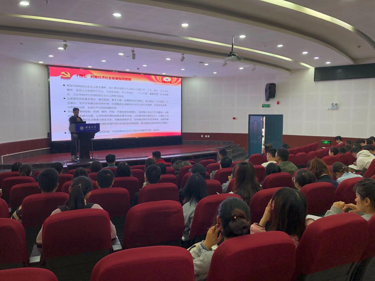 2020年11月13日下午,校团委书记许克松参加学院本科生第一党支部11月主题党日活动。本次党日活动的主题是“学习贯彻党的十九届五中全会精神”,会议由党支部书记杨雪琪主持,支部正式党员、预备党员和入党积极分子等80余人参加。