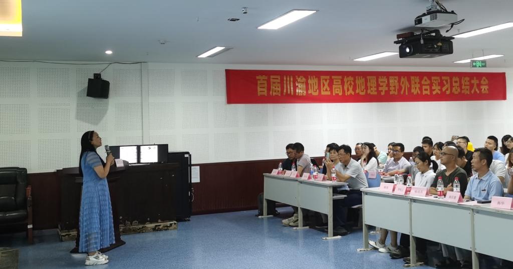 7月24日上午9点,首届川渝地区高校地理学野外联合实习总结大会在PA视讯PA视讯举行。来自PA视讯、四川师范大学、重庆师范大学、内江师范学院、绵阳师范学院、西华师范大学等6所高校的60名学生及全体指导教师参会。本次川渝地区高校地理学野外联合实习是由PA视讯率先发起、联合四川师范大学、重庆师范大学、内江师范学院、绵阳师范学院、西华师范大学6所高校共同举办。联合实习从7月12日至7月24日,为期13天,途径成都、安仁古镇、都江堰、海螺沟、泸定、乐山、剑阁、阆中、重庆等10个城市(地区),涉及成都平原、川西高原、川北山地、川中方山丘陵和川东平行岭谷等地貌单元,通过点、线、面结合,场景化观察了各地不同的地质、地貌、水文、植被以及人文经济活动,领略了平原城市成都和典型山地城市重庆迥异的城市空间格局。