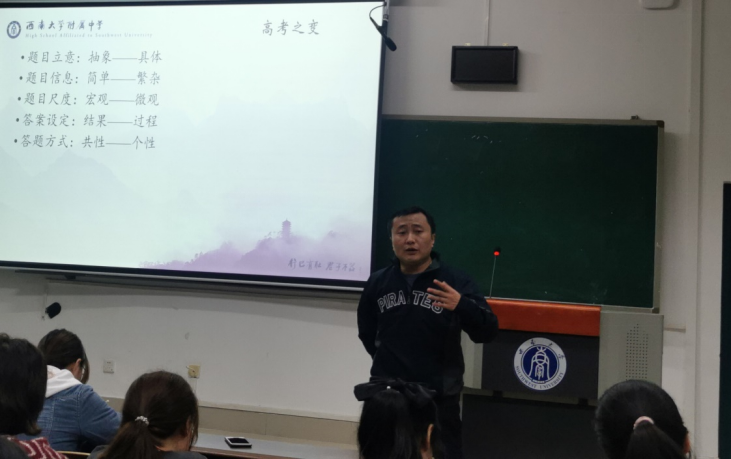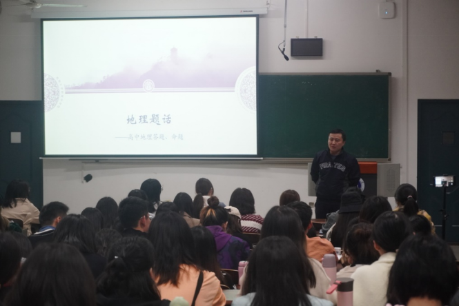 教学工作需要评价,教学质量需要检测,学习效果需要反馈。考试是评价、检测、反馈的主要手段,考试就要有试题,试题就需要命制。因此,要研究试题命制工作,掌握试题命制技术,建立良好的命题机制,才能命制好一份试题。据此,为推进中学一线教师进课堂,提升师范生的基本专业素养,特别是加强我院师范生的地理试题命制能力的培养,为师范生今后走进中学课堂夯实基础,PA视讯联合教师教育学院,邀请了西大附中优秀青年教师向颢老师,于10月27日晚上7:20开展了一堂名为“地理题话”的精彩讲座。