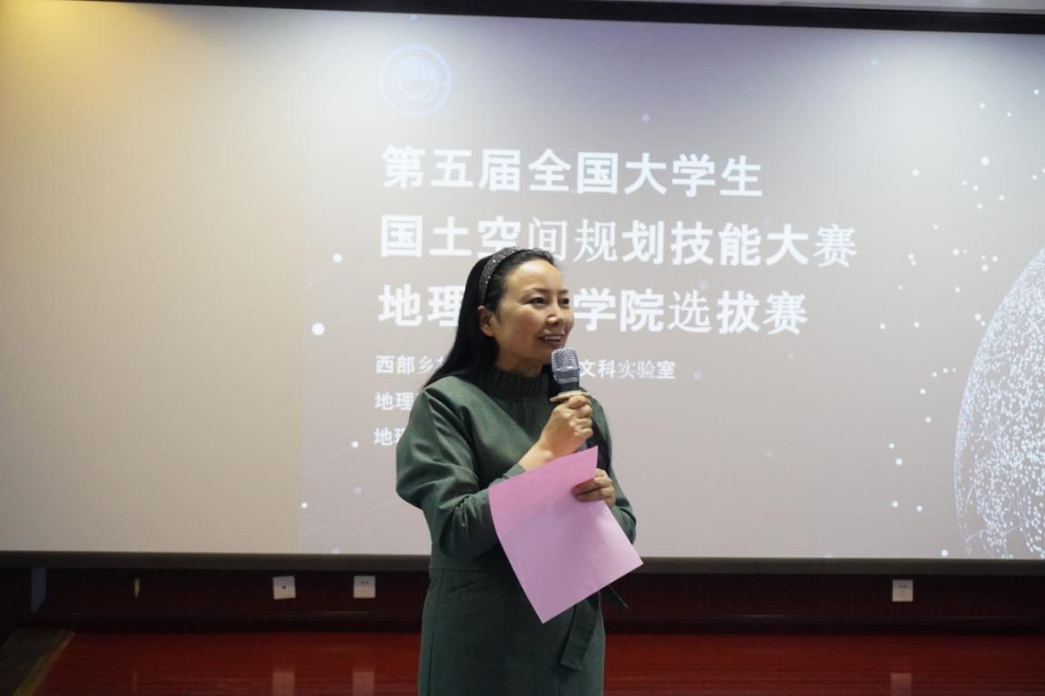 杨庆媛副院长为本次选拔赛致辞。她首先向重庆市北碚区规划和自然资源局对本次比赛的支持以及筹备选拔赛的老师和同学表达了衷心感谢,也对参加选拔赛的同学们表示了诚挚祝愿。杨院长表示,本届全国大学生国土空间规划技能大赛以“优化空间格局,完善空间治理”为主题,可以鼓励同学们学技能、练技能、比技能、用技能,对提高编制国土空间规划等规划技能水平、增强专业竞争力、把书本知识转化为实际行动,具有重要意义。回顾去年大赛,我院学子取得了一等奖的好成绩;今年我院高度重视,早谋划、早安排、早部署,希望通过本次比赛,能够提高大家对专业技能的认识和参与热情。