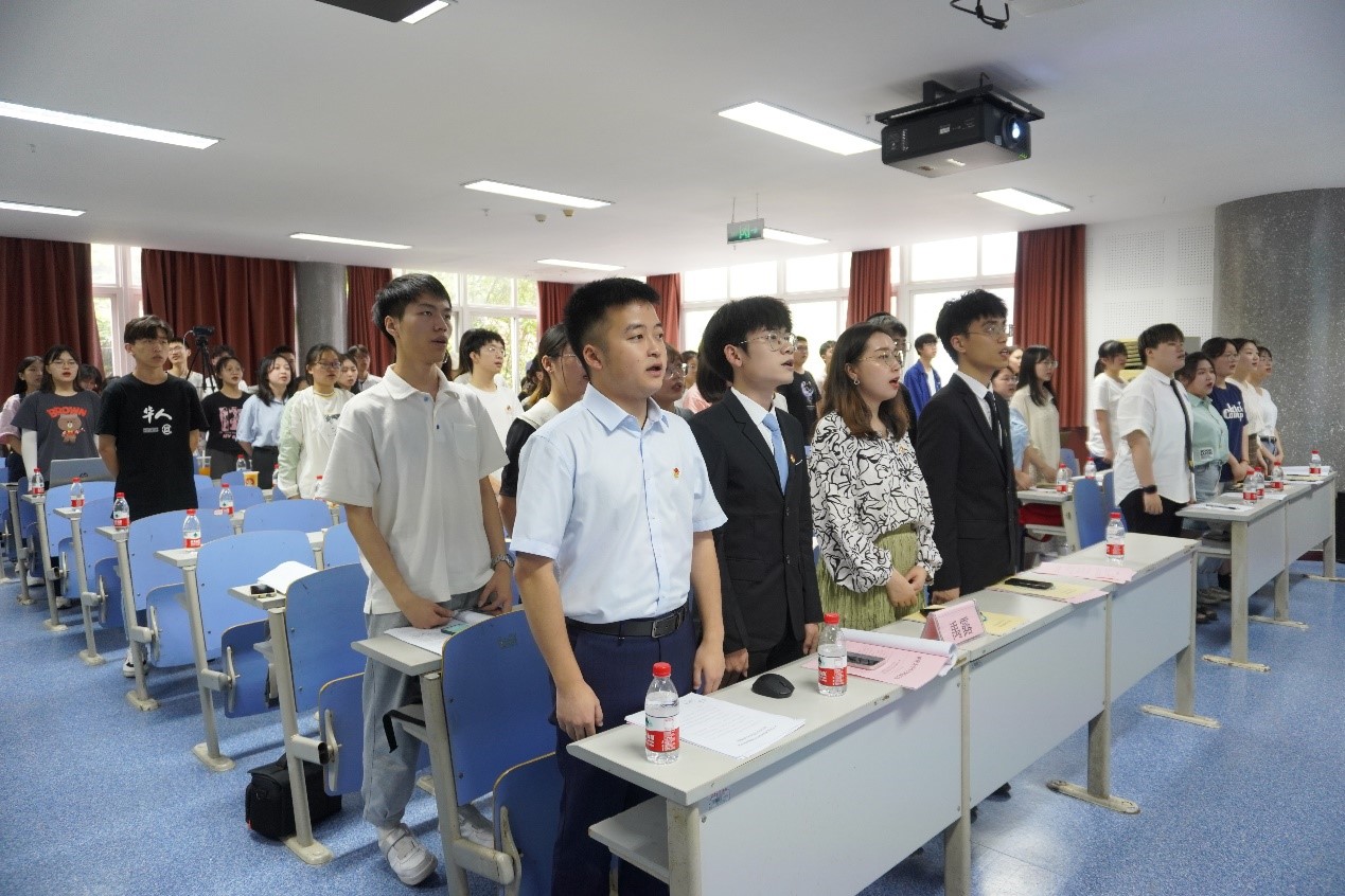 PA视讯PA视讯第八次学生代表大会于2022年6月10日下午在学院301报告厅顺利召开。本次大会应到学生代表77人,因病因事请假19人,实到学生代表58人,符合开会规定人数。出席本次会议的领导老师同学有:学院团委书记禹露老师,第七届学生委员会委员薛思懿、王业荣、侯程耀、吴德灿、郭锐。