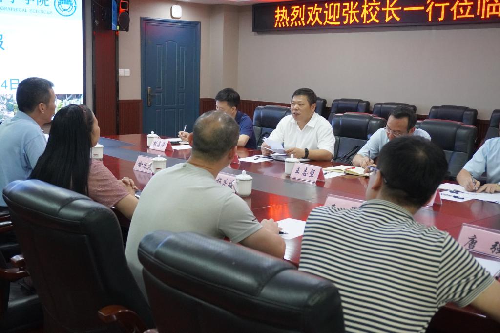 6月14日下午,学校校长张卫国带领人力资源部、科学技术处和党政办公室相关领导莅临我院调研指导,学院党政领导班子、金佛山国家站负责人及相关工作人员参加会议。