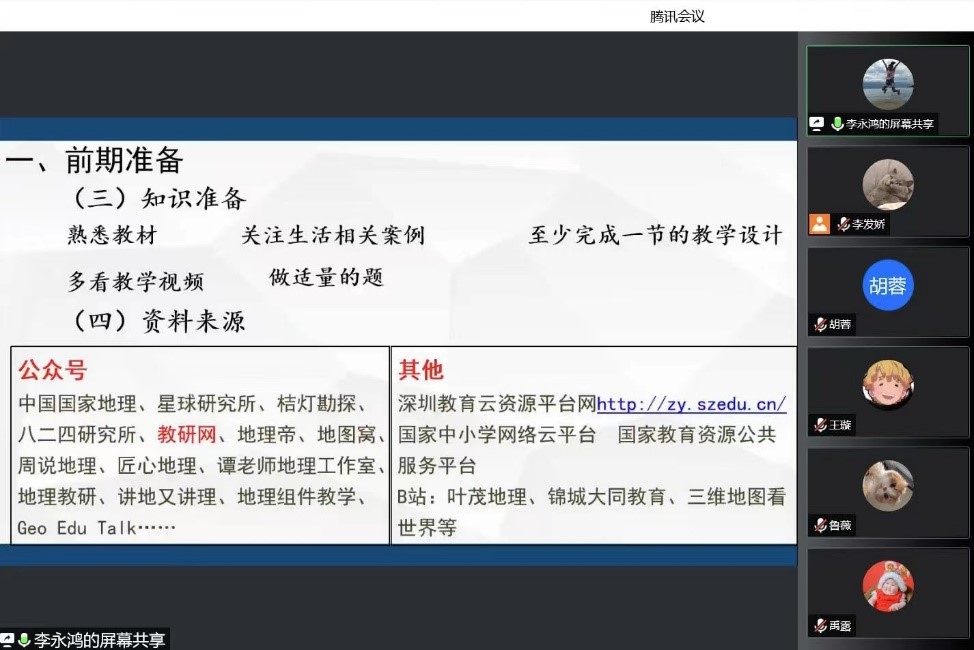 会议第二环节,李永鸿老师做教学技能及班主任培训。他从一线教师的角度,提出了作为一名实习生需要注重的一些方面。首先是前期准备方面。思想上,要将思想从学生转变为老师,从学习者转变为教育者;资料上,各类教材与资料以及一些指导书籍需要准备到位;知识上,多学多做多看多积累多反思是实习生需要做到的。地理教学实习方面,李老师从听课、备课、试讲与打磨、上课、课后总结与反思五个方面,以实例来进行切入,做了非常详细的讲解,指出了在地理教学实习中需要注重学习与思考。班主任工作实习方面,李老师结合了自己的工作经验从“五心”出发,也就是责任心、爱心、耐心、信心与慧心,学会主动地学习与反思。最后李老师对实习生提出的一些疑问进行了清晰明确的解答。