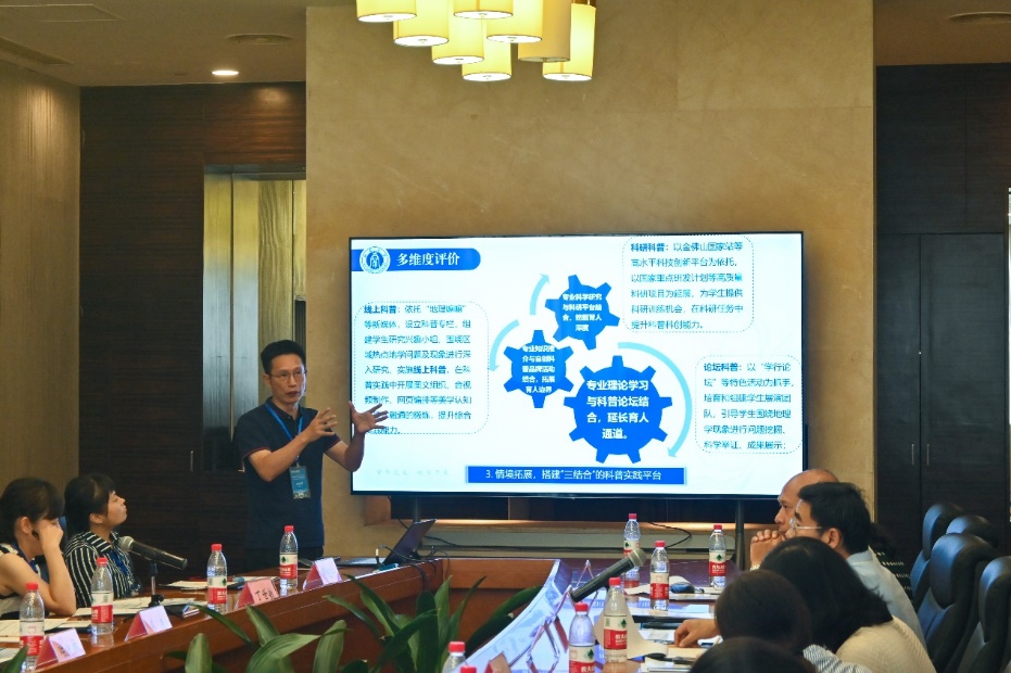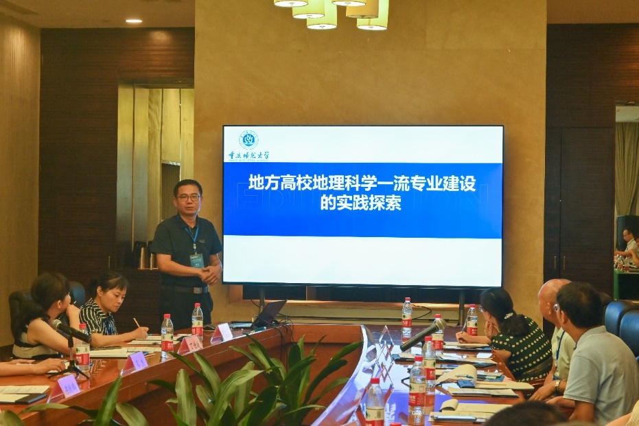 主旨报告环节,重庆大学陈猷鹏教授、PA视讯王勇教授、重庆师范大学高鑫教授、重庆工商大学吴虹教授和PA视讯陈俊华副教授分别以《环境监测课程建设与思考》《师范专业认证理念下地理科学一流专业建设的思考与实践 》《地方高校地理学一流专业建设的实践探索》《提高环境工程本科生的创新实践能力与实践 》《地理学创新人才培养的科普育人路径探索研究》为题作了会议报告。