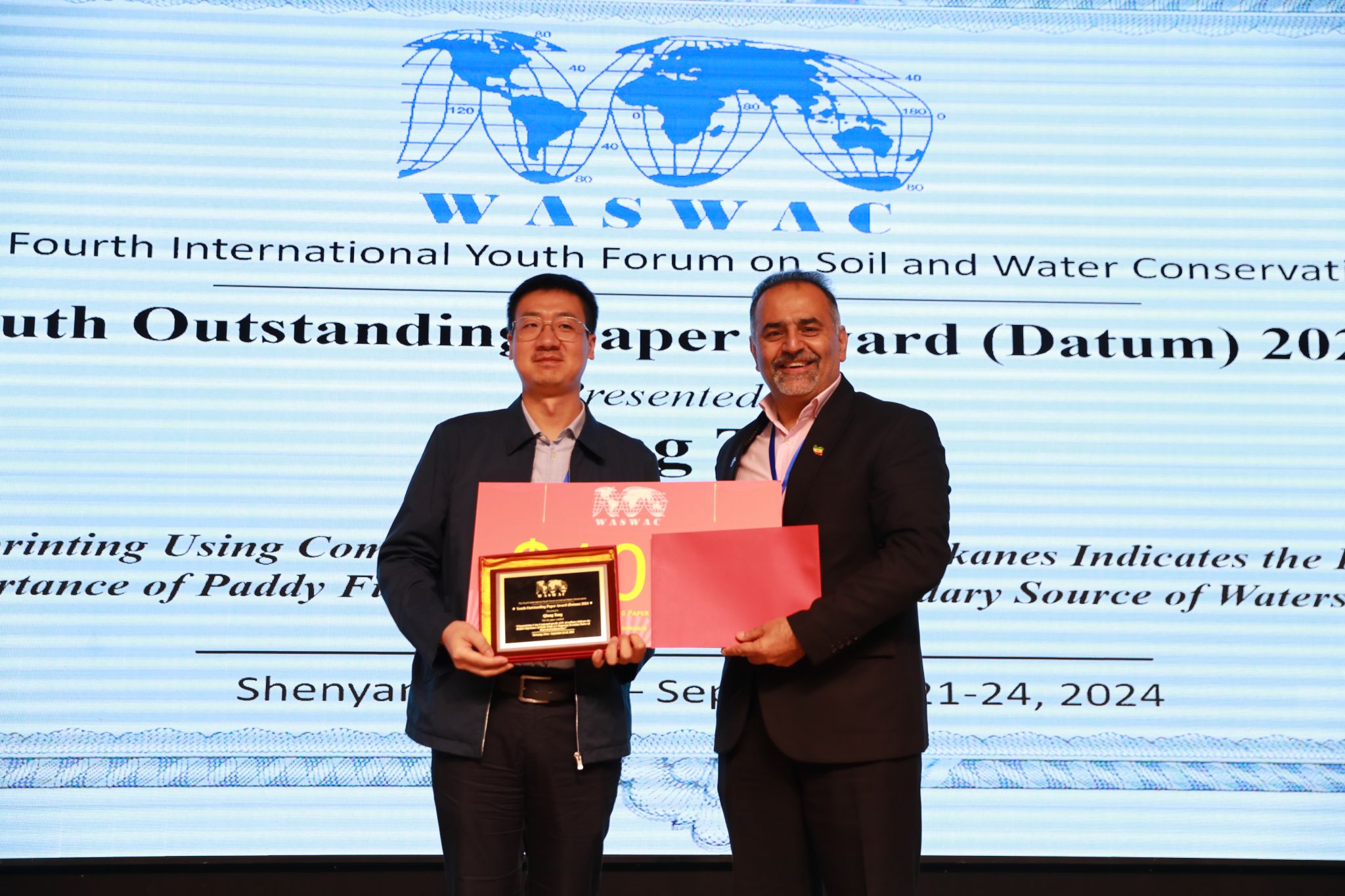 2024年9月21-24日,由世界水土保持学会主办,沈阳农业大学和中国水土保持学会承办的第四届国际水土保持青年论坛(The Fourth International Forum on Soil and Water Conservation)在沈阳举行,学院唐强教授获青年优秀论文奖。