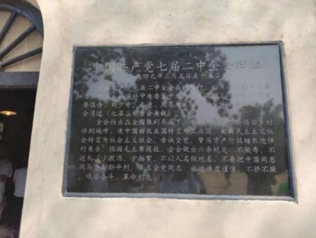 随后,同志们前往九月会议旧址,学习了九月会议召开的历史重要性。1948年在此地开展的九月会议上,中共中央提出从根本上打倒国民党反动统治战略任务,重点强调了党的纪律性,为当时的中国共产党奠定了发展基础。2013年习近平总书记在九月会议旧址上进行了座谈,在充分总结原九月会议的精神上提出了新时代的发展方向。