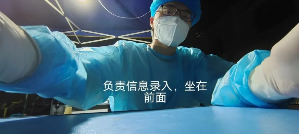 扫开箱码,为检测瓶贴条形码,然后就是不停地扫码,或是扫身份证。坐在那里两个多小时,密不透风的防护服不停累积汗水,最终在手肘弯曲处汇成了一汪“水潭”,难以想象坐在我身后穿着完全密封的“大白”的医护人员是什么感受。第一天完成工作已经一点钟了,因为全身一直湿透地坐在那里,皮肤起了过敏反应,回到家后特别的痒,哪怕使劲挠完还是痒得难受。不过想想能为社区,为合川,为抗疫献出自己的力量,觉得这大学生也就没白当一回。