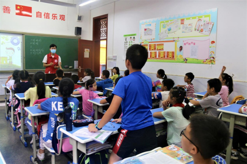 在学校老师的带领下,志愿者们来到天生桥小学五年级一班和二班。讲师志愿者通过让小朋友们对生活中常见的垃圾尝试进行垃圾分类、有奖问答等方式,鼓励小朋友们踊跃参与,大胆阐述,激发同学们对于垃圾分类的好奇与兴趣,带领同学们一起了解垃圾分类和环境保护的重要性,在探索的过程中增强课堂的参与互动,潜移默化地播下保护环境、节约资源的种子。