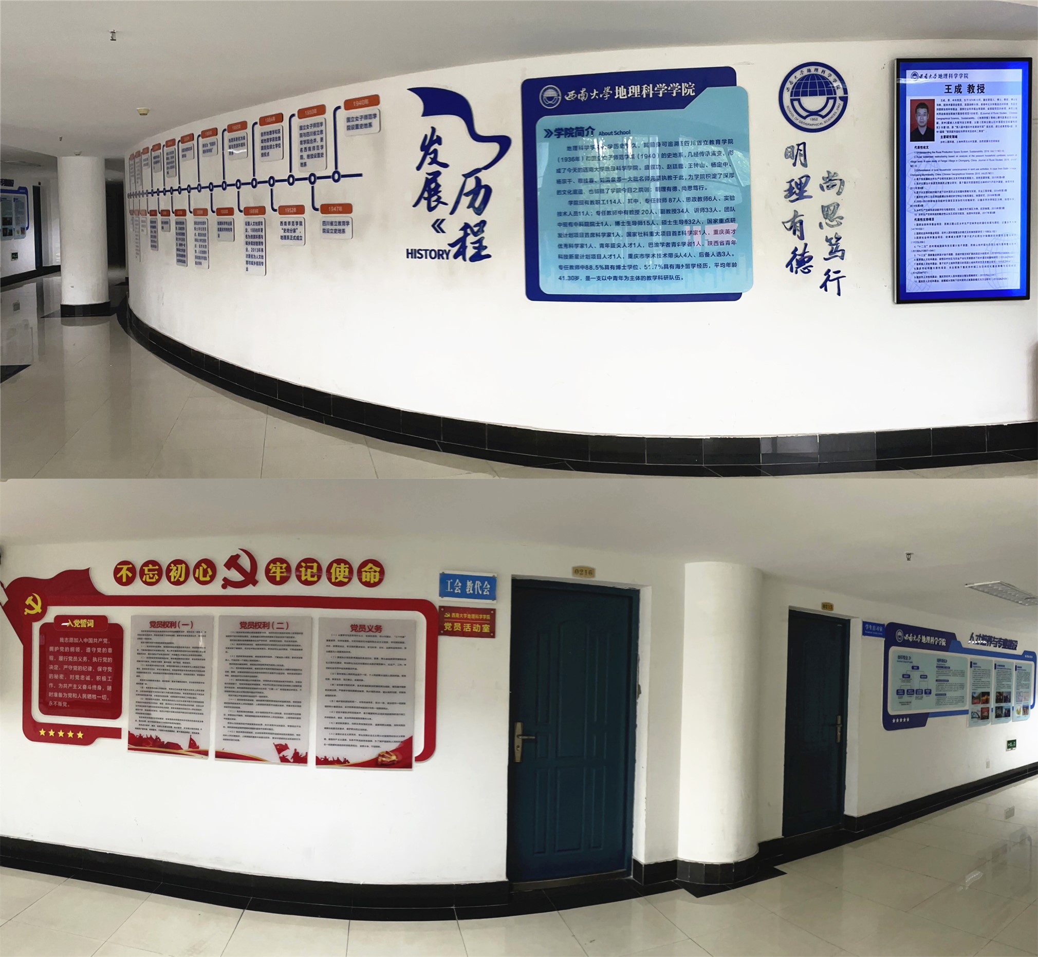 全面更新学院二楼的文化展示墙。学院历时两个月,完成二楼文化展示墙的广告设计、招标及装修工作,对文化墙进行全面升级,充分展示“文化地院”的精神,展现学院党建、学科建设、人才培养、社会服务等工作的经验。