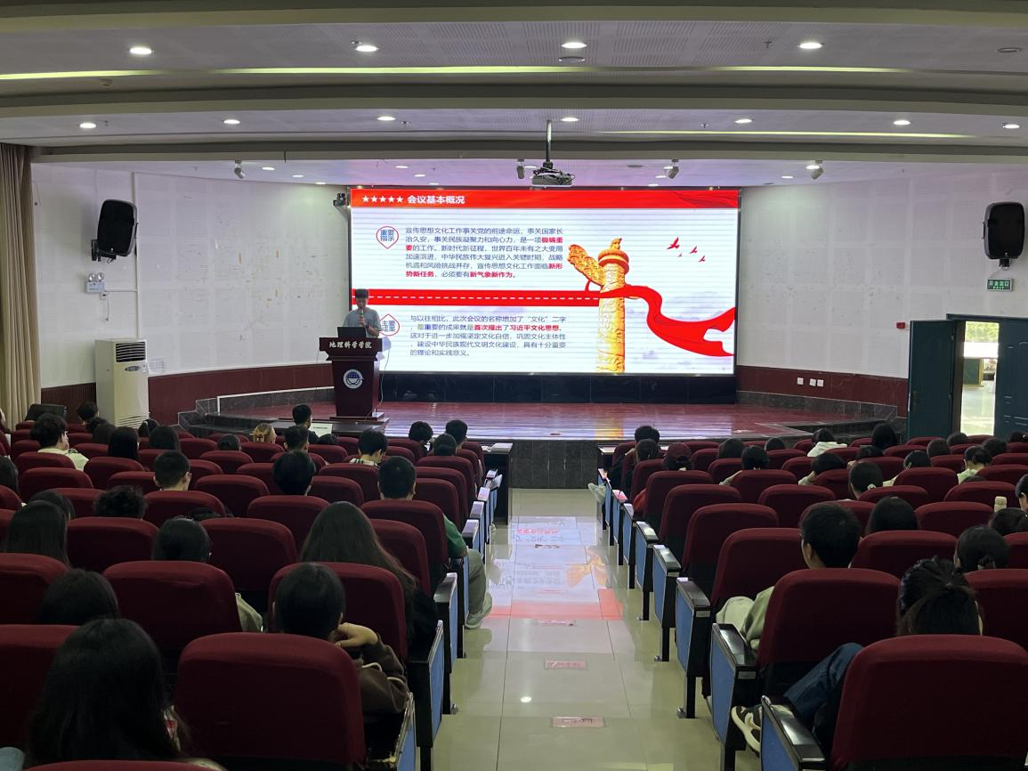 其后钱嘉淳同志带领与会同学深入理解习近平总书记对宣传思想文化工作作出的重要指示精神。他说到:宣传思想文化工作事关党的前途命运,事关国家长治久安,事关民族凝聚力和向心力,是一项极端重要的工作。新时代新征程,世界百年未有之大变局加速演进,中华民族伟大复兴进入关键时期,战略机遇和风险挑战并存,宣传思想文化工作面临新形势新任务,必须要有新气象新作为。