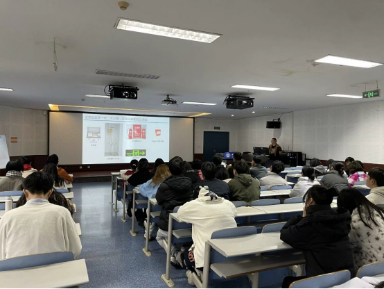 随后,潘进疆老师从实验室安全的重要性、学院实验室概况、如何在实验室中保护自己以及危化品申报购买流程等四个方面,为大家讲解实验室安全的相关内容,提高了同学们的安全防范意识。接着,支部组织研究生们实地走进学院实验室参观,禹朴家老师为大家现场演示规范的化学实验操作。