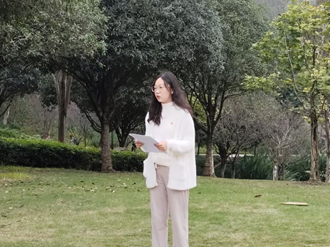 李祚同志以《道阻且长,行则将至》为题,向大家娓娓道来自己对研究生生涯三年的规划。她风趣幽默的语言给大家留下了深刻的印象。她通过在健身房锻炼的故事,“她”向同志们分享了有关坚持的智慧,同时,以自己闭门造车、浪费时间的教训,警示大家在科研中不要做“i”人,要经常向师兄师姐请教,避免不必要的弯路。最后鼓励大家在科研之余,不忘培养个人爱好,保持积极的生活态度,好运气自会到来。