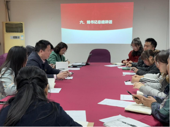 姚元锦书记在总结讲话中表示,一是要切实把党支部基础工作做扎实,确保各项工作落到实处。二是要结合实际大力推动、创新党建工作,将党建工作与学院发展深度融合,充分发挥党建引领作用,突出学科专业特色,促进学院工作高质量发展。三是要切实关注支部成员的发展需要,针对性做好党员教育管理工作,提升党支部凝聚力,让党建活动更加有声有色。