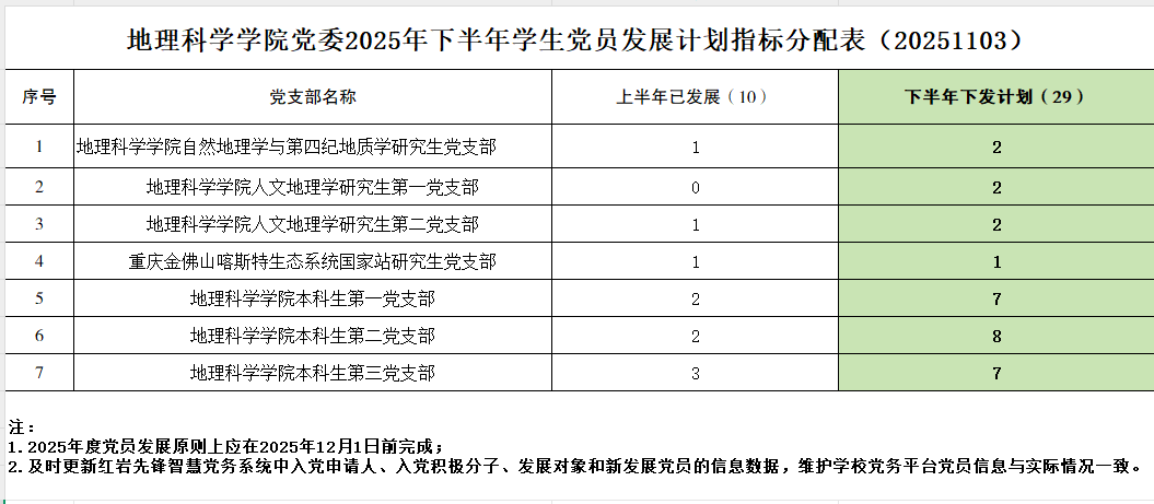 PA视讯党委2025年下半年学生党员发展计划指标分配表