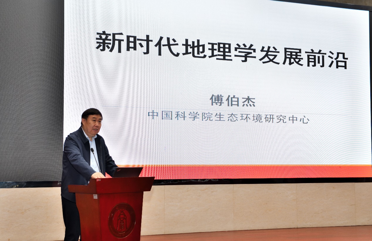学院党委书记姚元锦主持会议,会议伊始,姚元锦依次介绍与会专家与领导,并对他们表示诚挚欢迎。随后,中国科学院院士、中国地理学会监事长傅伯杰研究员作了《新时代地理学发展前沿》的学术报告,介绍了地理学的基本特征和发展过程,提出新时代地理学在发展目标、研究主题、研究方法、数据来源、研究范式方面的新趋势,指出新时代地理学已从定性描述向具有独特研究手段的定量化转变,总结了地理学研究进展、展望以及地理学综合研究的前沿热点,提出地理学服务国家战略需求、支撑经济社会可持续发展等学科使命,并对PA视讯PA视讯在地理学发展方面取得的成绩表示赞扬。